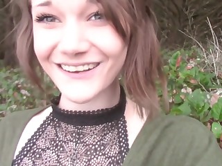 Public solo in nature with a thin and insatiable girl